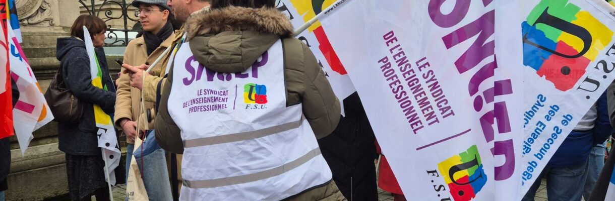 Le 11 Février 2026, le SNUEP-FSU Normandie s’est rassemblés devant les rectorats pour mettre le gouvernement en garde. A force de fermer des postes de profs, il n’y aura plus de profs.